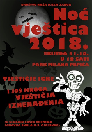 Društvo „Naša djeca“ Zabok već tradicionalno povodom Noći vještica organizira „Vještičje igre“ u Parku Milana Prpića u srijedu 31.10. u 18 sati.