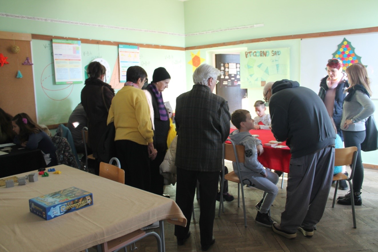 Akciji u školi su se pridružili korisnici Doma za stare i nemoćne osobe u Petrinji koji su se najviše zadržali na aktivnostima sportskog poligona i radionici šivanja.