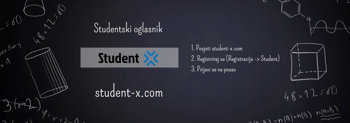 Student X: Student X je novi studentski oglasnik. Prijava je brza i jednostavna kako za studente tako i za poslodavce. Student se registrira unosom potrebnih podataka i nakon toga može s lakoćom pretraživati postojeće oglase poslodavaca. Ukoliko je zainteresiran, prijava za posao obavlja se klikom na „Prijavi se“ te se ona u istom trenutku prosljeđuje poslodavcu. Poslodavci se registriraju isto kao i studenti i mogu postavljati oglase, pregledavati prijave i jednostavno poslati povratnu informaciju potencijalnom budućem zaposleniku.