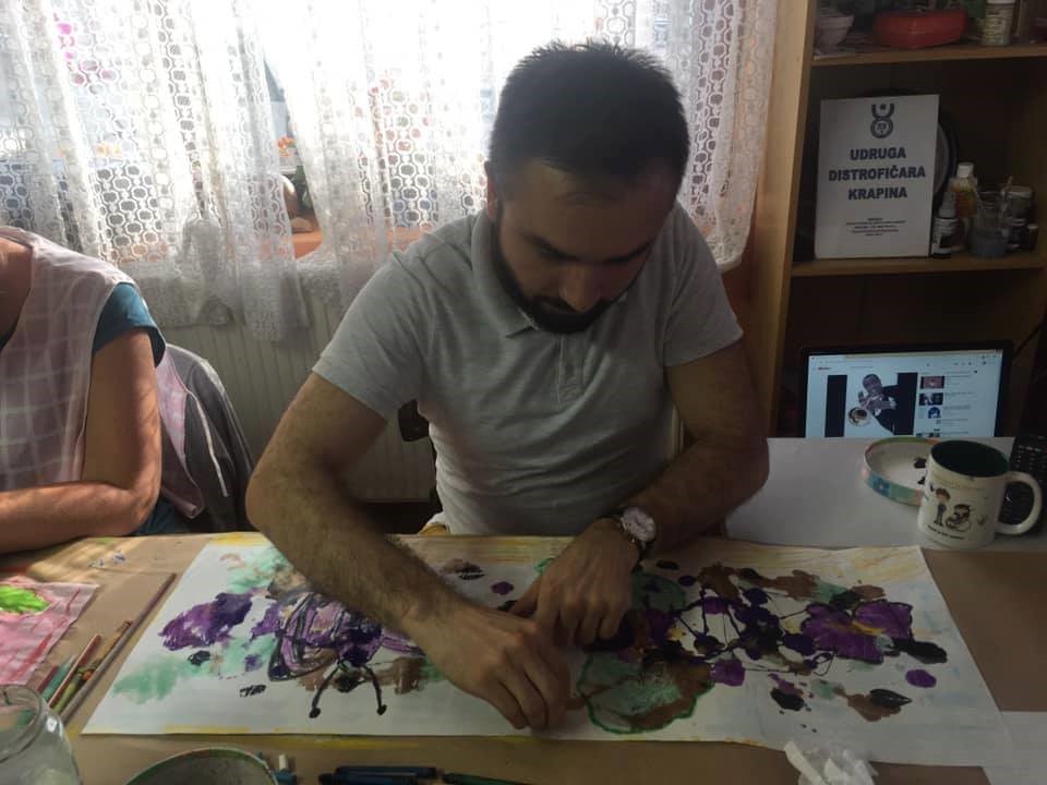 Nikola: Udruga distrofična Krapina trenutno sudjeluje kao partner u projektu Ključ kulture za sve generacije u sklopu kojeg u prostorije udruge dolazi profesorica Mirjana Drempetic H. Smolic gdje uz njenu pomoć i savjete upoznajemo različite slikarske tehnike i izrađujemo mala umjetnička djela 🙂